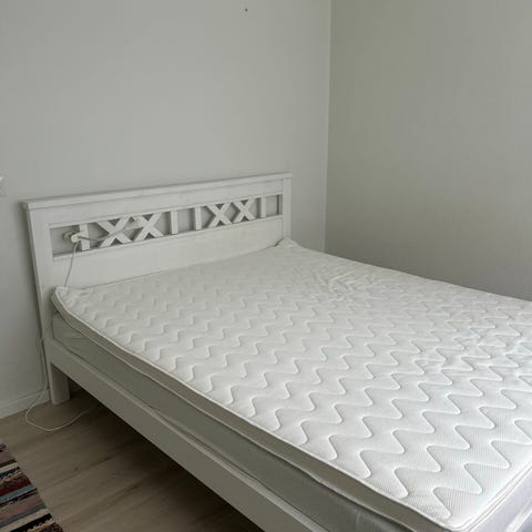 Kuvassa näkyy kaikki. Hyvässä kunnossa sänky.