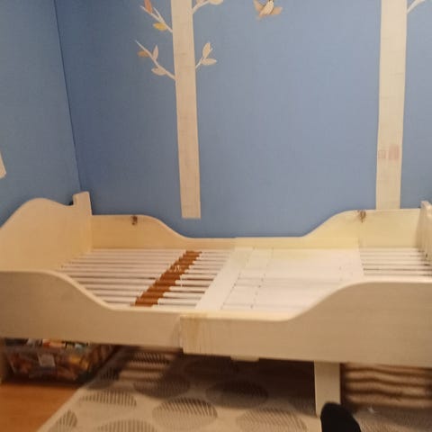 Hyväkuntoinen. Mitat kasassa 112 cm x 77 cm x 41 cm. Voi vetää 200 cm saakka.
