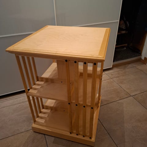 Boknäs karusellipöydässä on säilytystilaa kirjoille 2,24 hyllymetriä. Se toimii mainiosti yö- ja sivupöytänä sekä jopa tarjoiluvaununa. Sopii hyvin myös työhuoneeseen. Kuulalaakeroitujen pyörien ansiosta pöytää on helppo siirtää kevyesti, eikä se jätä jälkiä lattiaan. Kunto kuin uusi!