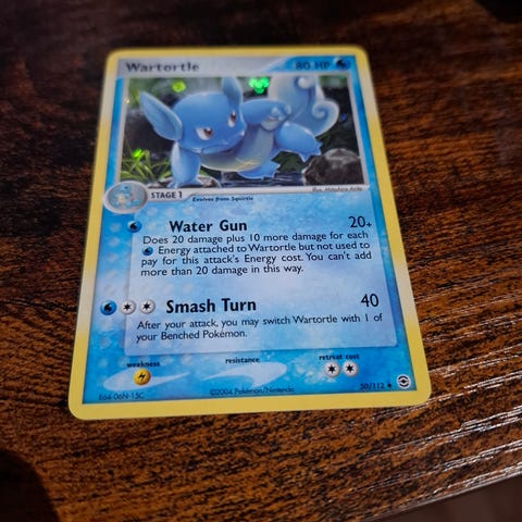 Myydään vanha holo ja sarjan EX Crystal Guardians stämpillä oleva Wartortle 7/100 pokemonkortti.