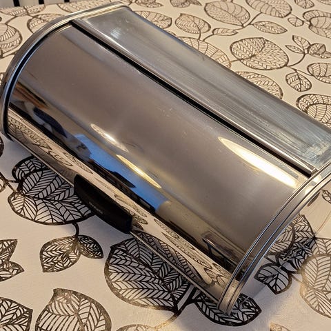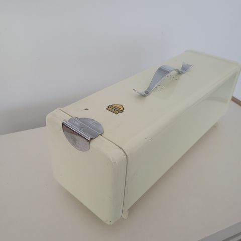 Kaunis, siisti ja hyvä brabantia leipälaatikko. Päällipellissä valkoinen jälki, joka näkyy viimeisessä kuvassa.