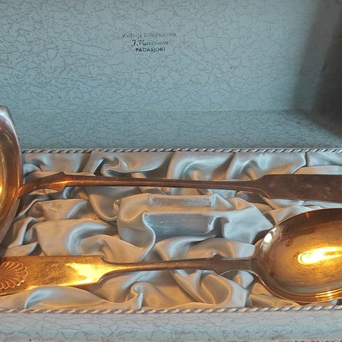 Hedelmäkoriksi, leipäkoriksi, karkkikulhoksi tai vain koristeeksi kahvallinen kulho alpakkaa. Korkeus kahvan kanssa 15cm ja kahva alhaalla 6cm, halkaisija 23cm. Pohjassa kaiverrus päivämäärällä ja materiaalileima, josta ei paljoa enää erota. Tulkitsisin kuitenkin, että alpakkaa on. Kunto on kohtalainen, melko paljon tummentumaa ja ajan patinaa. Nouto Seinäjoelta tai postikulut ostajalle.