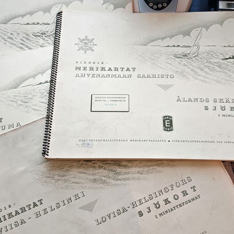Pienoismerikartat suojapusseineen, 2 kpl, "Hanko lähivesineen", sekä "Loviisa - Helsinki".