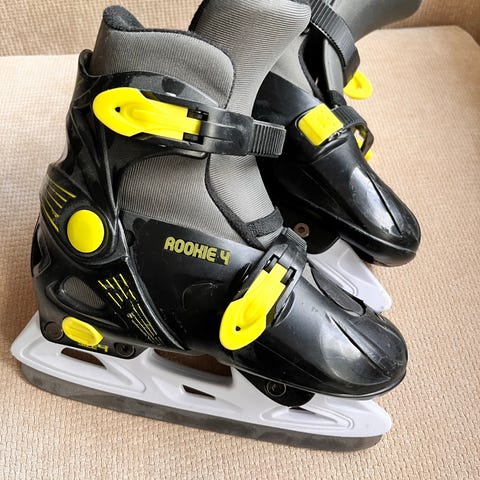 Rookie lasten luistimet, koko 30. Värit valkoinen ja pinkki. Luistimet on varustettu helppokäyttöisellä kiristysmekanismilla. Muutamia naarmuja, ehjät ja toimivat. Savuton koiratalous. Nouto Espoon Tillinmäestä.