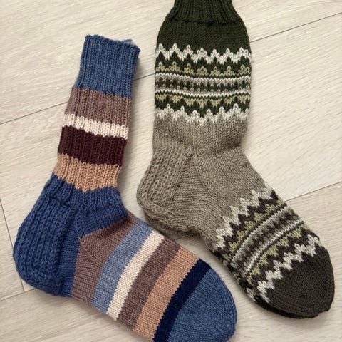 50v. Lahjaksi hyvät sukat, en muista mitä lankaa. Jalkaan 43-45, nouto seinäjoki, postitettuna 22 e.