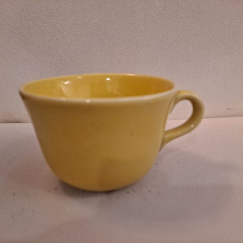 Posliinikuppi, jossa on punainen kukkakuvio. Käytetty materiaali on posliini.