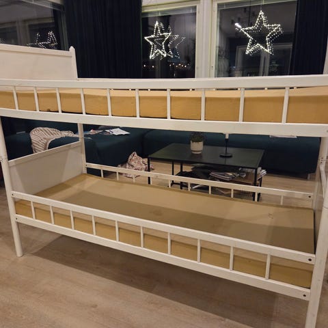 Sängyt saa myös erikseen. Patjat saa halutessaan mukaan, mutta niistä toinen on enemmän elämää nähnyt.