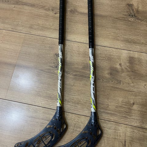 Fat Pipe Raw Salibandymaila musta-vihreä. Mailan gripissä vähän kulumaa, mutta maila on muuten hyvässä kunnossa.