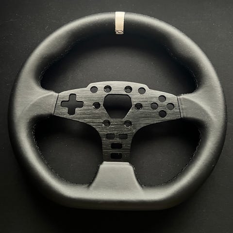 Custom made moza steering wheel, made out of enkei 350mm steering wheel, with laser cutted aluminum center, only 67g heavier than original small wheel, also comes with extended paddle shifter