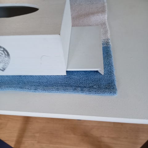 Sininen laatikko tilavuus 35l. Muuten ehjä ja tuoksuton mutta kannessa halkeama joka ei vaikuta käyttöön. Katso kaikki kuvat.