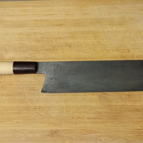Myydään keskikokoinen käsin taottu japanilainen Usuba mallinen japanilainen kokin veitsi, seppämestariltä Seichi Oizumi. Terän pituus on 13x5cm, veitsen kokonaispituus on 25,5cm. Terä on taottu yhdestä terästä joka ei ole laminoitunut, perinteisellä japanilaisella tekniikalla ja karkaistu saven avulla. Kahva on tehty ilex (piikkipaatsama) ja grenadillan puusta. Terä on alle 2mm ohut ja tarkoitettu vihannesten leikkaamiseen. Erittäin terävä ja vain käsin pesu.