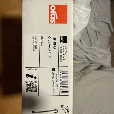 Oras Vega ECO hana kromin värisenä. Malli 1810FG, suunniteltu veden säästämiseen ja käytettävyyteen.
