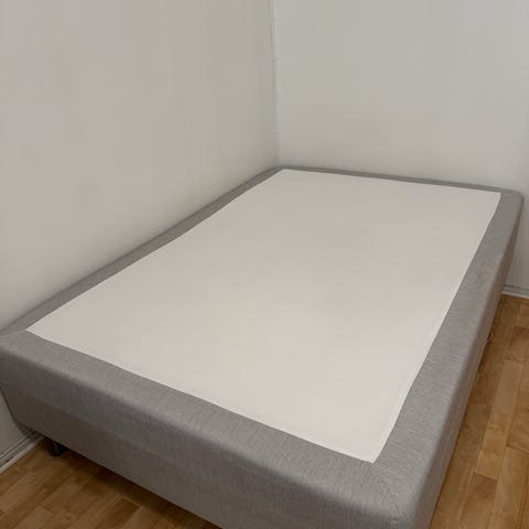 140 cm leveälle patjalle tarkoitettu sängynrunko, jossa "katos" -rakenne. Muuten hyvässä kunnossa, mutta keskellä kulkevassa laudassa, johon yksi keskimmäisistä jaloista kiinnittyy, on pientä lohkeamaa (kuvat 4 ja 5). Minulla lohkeama ei ole kuitenkaan haitannut käytössä. Jotain pientä muuta kulumaa voi löytyä, mutta kokonaisuudessa hyvässä siistissä kunnossa! Sänky on tilattu muistaakseni Ellokselta v. 2021. Ovh noin 200 e.