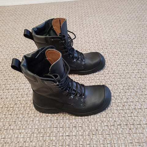 Uuden veroiset Mänskän kengän valmistamat maiharit. Vettä hylkivä pintanahka, pitävä TR-kumipohja, vetoketju sivussa. Pari kertaa käytetty eli on uudenveroiset. Tämä on ilman vuoria oleva malli. Koko 46. Uudet valmistajalla 98€, tosin tämä koko ollut jo pitkään loppuunmyyty suurin saatavilla oleva on 41. Vähän armeijan M91 mallin tyyliset. Kysymällä lisää