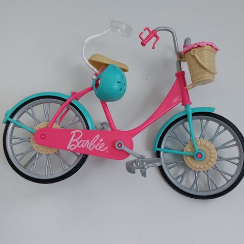 Siistikuntoinen Barbien kilpapyörä, väri pinkki. Mukana kypärä.
