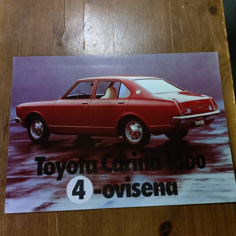 Vanha, hienokuntoinen esite koskien Toyota Carina (A10) henkilöautoa. Ollut kansiossa. Harvinainen.