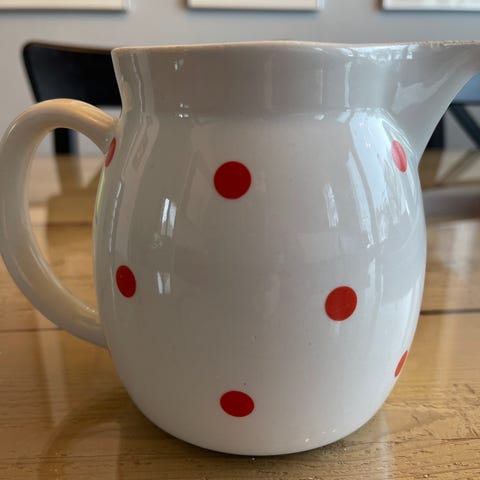 Ulkopinnassa selkeää kulumaa, sisältä huippukunnossa ja lasitteessa ei krakeloitumaa