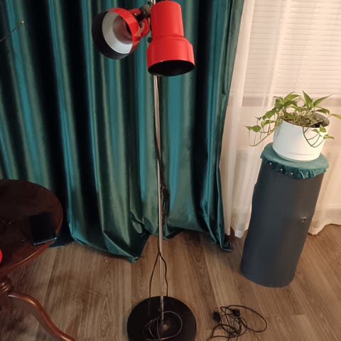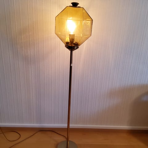 50-60 - luvun lattiavalaisin, korkeus 137, varjostin 34/44 cm