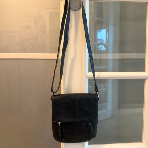 Olkalaukku nahkaa ja kangasta vihreä beige.Siisti