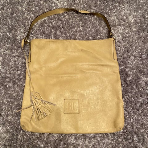 Olkalaukku nahkaa ja kangasta vihreä beige