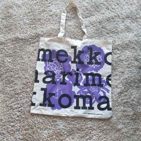 Marimekko kangaskassi, logokassi. Kassi on uusi ja käyttämätön. Uusi musta väri mustilla kirjaimilla.