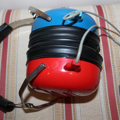 Salkkumallinen vanha mutta toimiva audiometri eli kuulon tutkimuslaite keräilijälle, rekvisiitaksi tai valelääkärille.