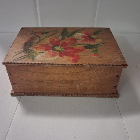 Puinen kuviollinen rasia musta pohja kullan väriset kuviot. 24×15× 9 ajan patinaa on. Hieno rasia