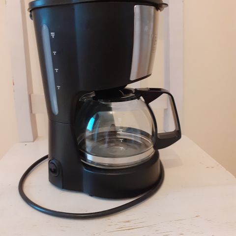 OBH Nordica kahvinkeitin teräs-musta. Laitteessa on lasikannu, digitaalinen ohjauspaneeli ja vesimäärän mitta-asteikko sivussa. Yläosa avautuu suodatinpussin ja kahvijauheen lisäämistä varten. Runko on osittain ruostumatonta terästä ja osittain mustaa muovia. Ostettu maaliskuussa 2025.
