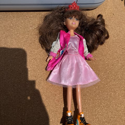 Ihana, kookas rullaluistelija-nukke hyvin kääntyvin nivelin. Korkeus n. 39 cm. Nukella on sekä hennon vaaleanpunainen ja violetti mekko.