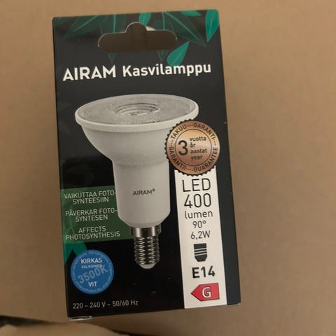Myydään vanha Airam Neodymlite -kasvilamppu.