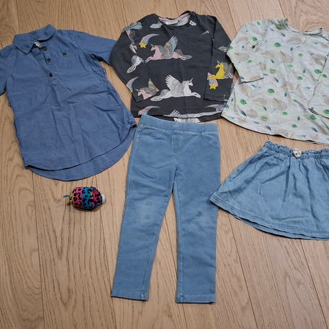 98cm tytölle pakettina 3 pitkähiaista mekkoa ja 2 leggingsit. Lisäksi Ty pehmolelu. Siisti käytetty kunto.