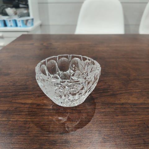 Iso hyväkuntoinen kristallimalja. Halkaisija vajaa 31cm.