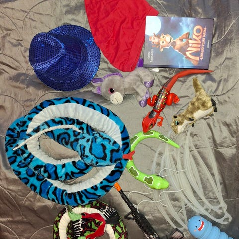 Annetaan kuvan lelut. Parkkitalo saa äänet. Halutessaan voi tuoda karkkipussin lapsille.