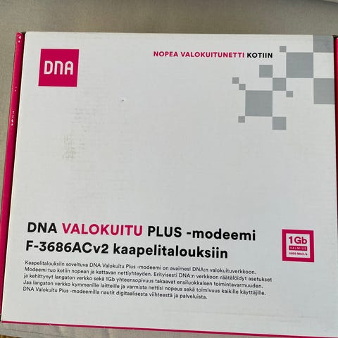 Käytetty, mutta hyvin toimiva Valokuitu Plus-modeemi kaapelitalouksiin. Johdot mukana.