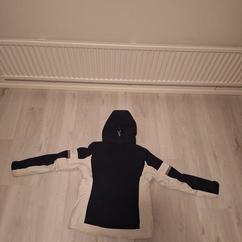 Lantiolla kiinteä lumilukko, hihansuissa lycraresorit peukaloaukoilla, irrotettava huppu ja helmassa kiristysnauha.