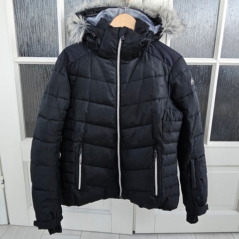 McKinley naisten anorakkimallinen laskettelu/talvitakki ja housut. Koko L/42. Laadukas ja lämmin, vedenpitävä ulkopinta. Erittäin hyvässä kunnossa, käytetty vain muutamalla laskureissulla. Takissa toisen taskun vieressä lähes huomaamaton tahra (vikassa kuvassa), ei kiinnitä huomiota ellei tarkkaan katso. Saattaa lähteä ihan kostealla pyyhkimällä.