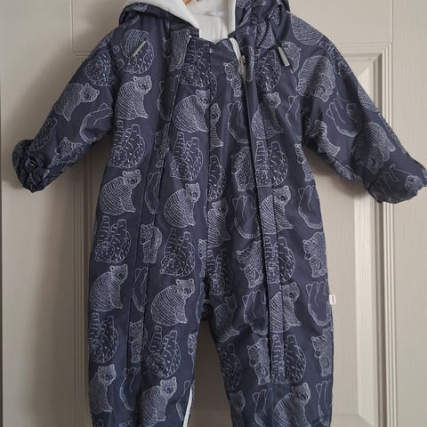 Reiman toppahaalari, koko 68-74cm. Siisti ja ehjä. Neppareilla suljettavat lahkeen suut ja käännettävät hihansuut. Vetoketju haaroissa vaipanvaihtoa varten.
