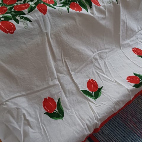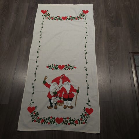 Tonttukuvioinen, käytetty, siisti joululiina. Koko 90cm*90cm.