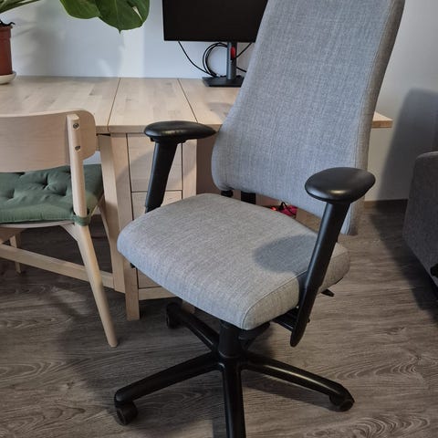 Myydään laadukas Martelan Axia työtuoli. Tuolin alaosa on verhoiltu uudelleen. Lisäksi alaosan muoviosa on vääntynyt kahdesta kohdasta. Nämä ja verhoilun kuluma, josta kuva, on huomioitu hinnassa. Käsinojat eivät ole tallessa. Nouto Jyväskylän keskustasta.
