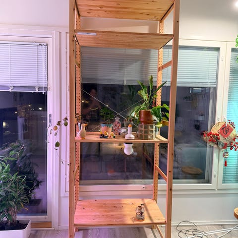 Ikea ivar hylly. Pieniä käytönjälkiä, sisällä kaksi hyllyä toisen hyllyn kiinnikkeet hävinnyt (saa ostettua uusia).
