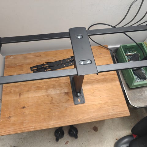 Käytöstä poistettu seinäteline telkkarille. Ei vikoja. Kääntyvä malli