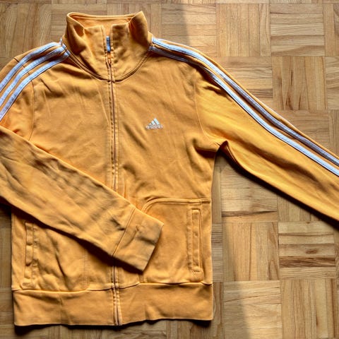 Adidas verryttely takki oranssi naisten koko 40 valmistettu polyesteristä. Takissa on pitkä hihat, vetoketjukiinnitys ja klassiset Adidas-raidat hihoissa.