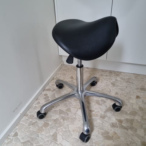 Siistissä kunnossa olevat Futran laadukas satulatuoli. Tuolissa on tukeva yksiosainen ja kaasujousella säädettävä istuin, selkänoja ja pyörällinen jalkaristikko. Säädöt kunnossa. Vain haku Savonlinnasta.