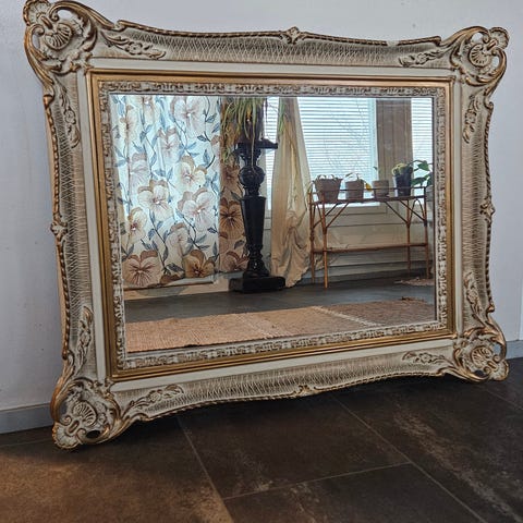 Vanha peili, huudettu aikanaan Bukowskis-huutokaupasta Ruotsista. Iän tuomaa patinaa mutta edelleen näyttävä. Mitat 950x500mm