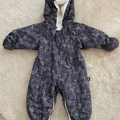 Reiman alushaalari, koko 68-74cm. Siisti ja ehjä. Umpeen käännettävät lahkeen ja hihan suut. Kaksisuuntainen vetoketju.