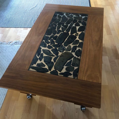 Vanha sohvapöytä pikaisesti muuton tieltä pois, saatu aikaisemmin käytettynä joten pinta kulunut