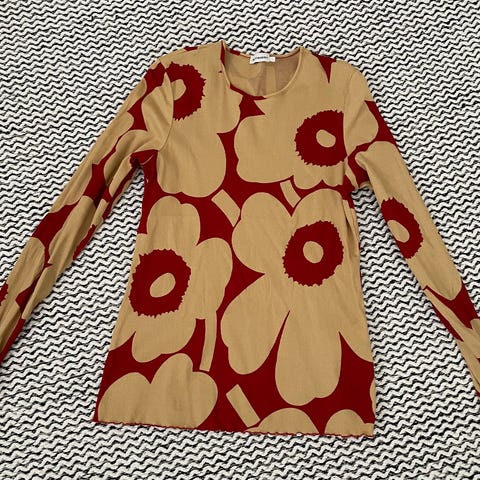 Marimekko Floral paita, koko L, valmistettu puuvillasta. Kirjava väri ja pitkähihaisuus soveltuvat naisten käyttöön. Paita on uusi, alkuperäisillä hinnoilla ja tunnisteilla.