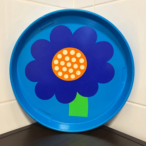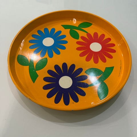Retro metallinen tarjotin, halkaisija noin 30cm, on vanha, joten jälkiä on, keräilytarjotin