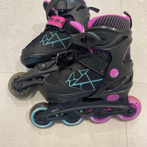 SOC uudenveroiset pari krt käytetyt rullaluistimet lasten koossa 27-30 mustan ja pinkin värisinä. Soveltuvat rullaluisteluun ja sisältävät säädettävän kiinnitysjärjestelmän turvalliseen käyttöön. Laakerit ja jarru kunnossa. #rullaluistimet #lapselle