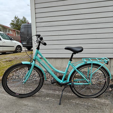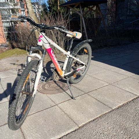 Nouto sovittu, poistan ilmoituksen kun kaupat on tehty. 24-tuumainen lasten pyörä, kolme vaihdetta. Ollut käytössä muutaman vuoden, säilytetty sisällä. Kunto ok, näkyy kuvista. Uusi takarengas. Vain nouto.